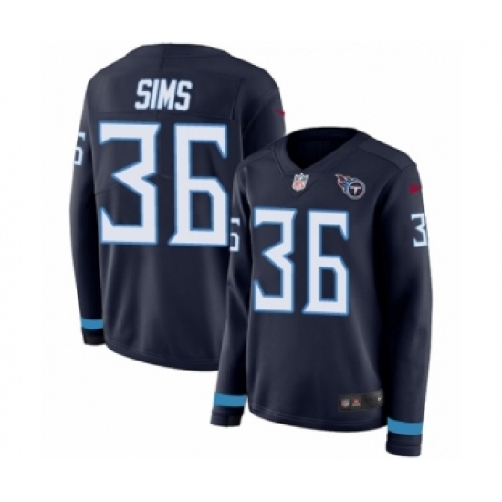 >Women's Nike Tennessee Titans #36 LeShaun Sims Limited Navy Blue Therma Long Sleeve NFL Jersey