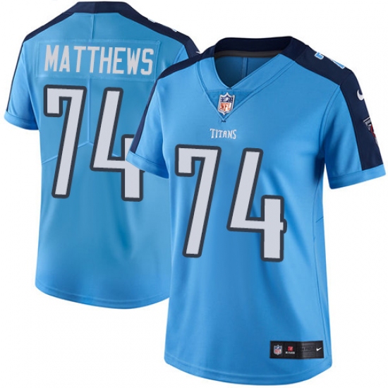 Home>NFL>Tennessee Titans>Bruce Matthews>Women's Nike Tennessee Titans #74 Bruce Matthews Elite Light Blue Team Color NFL Jersey