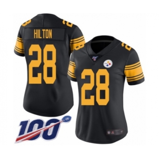 >Women's Pittsburgh Steelers #28 Mike Hilton Limited Black Rush Vapor Untouchable 100th Season Football Jersey