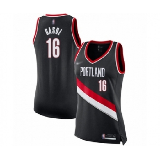 >Women's Portland Trail Blazers #16 Pau Gasol Swingman Black Basketball Jersey - Icon Edition