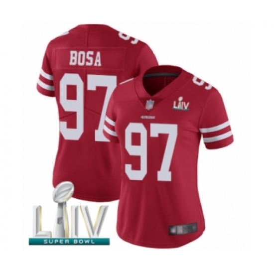 Women's San Francisco 49ers #97 Nick Bosa Red Team Color Vapor Untouchable Limited Player Super Bowl LIV Bound Football Jersey