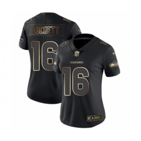 >Women's Seattle Seahawks #16 Tyler Lockett Black Gold Vapor Untouchable Limited Football Jersey