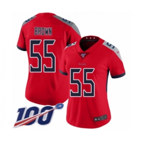 >Women's Tennessee Titans #55 Jayon Brown Limited Red Inverted Legend 100th Season Football Jersey