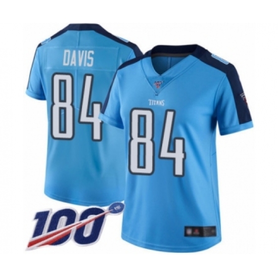 Women's Tennessee Titans #84 Corey Davis Limited Light Blue Rush Vapor Untouchable 100th Season Football Jersey
