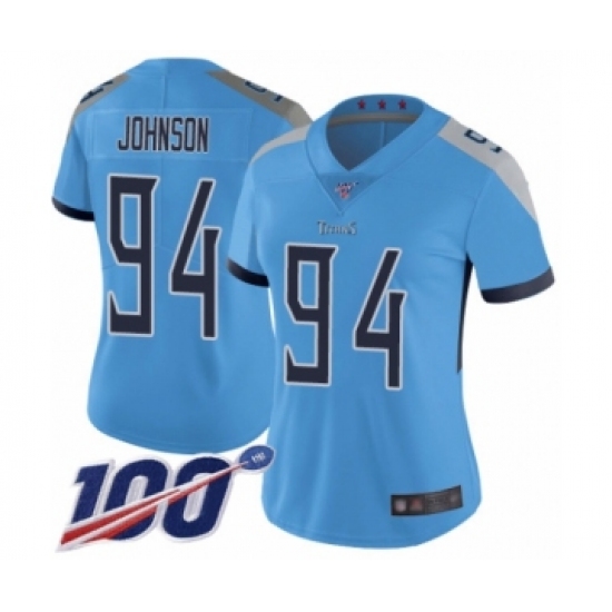 >Women's Tennessee Titans #94 Austin Johnson Light Blue Alternate Vapor Untouchable Limited Player 100th Season Football Jersey