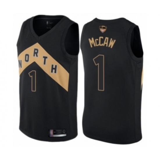 >Women's Toronto Raptors #1 Patrick McCaw Swingman Black 2019 Basketball Finals Bound Jersey - City Edition