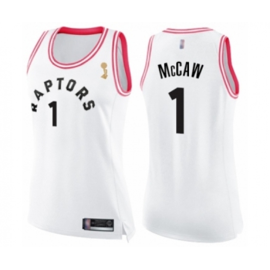 Women's Toronto Raptors #1 Patrick McCaw Swingman White Pink Fashion 2019 Basketball Finals Champions Jersey