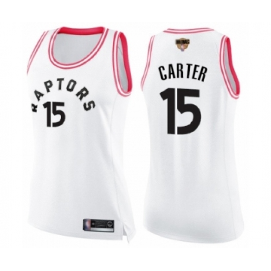 Women's Toronto Raptors #15 Vince Carter Swingman White Pink Fashion 2019 Basketball Finals Bound Jersey