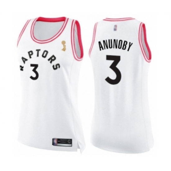 Women's Toronto Raptors #3 OG Anunoby Swingman White Pink Fashion 2019 Basketball Finals Champions Jersey