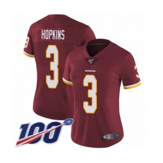 Women's Washington Redskins #3 Dustin Hopkins Burgundy Red Team Color Vapor Untouchable Limited Player 100th Season Football Jersey
