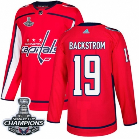 >Youth Adidas Washington Capitals #19 Nicklas Backstrom Authentic Red Home 2018 Stanley Cup Final Champions NHL Jersey