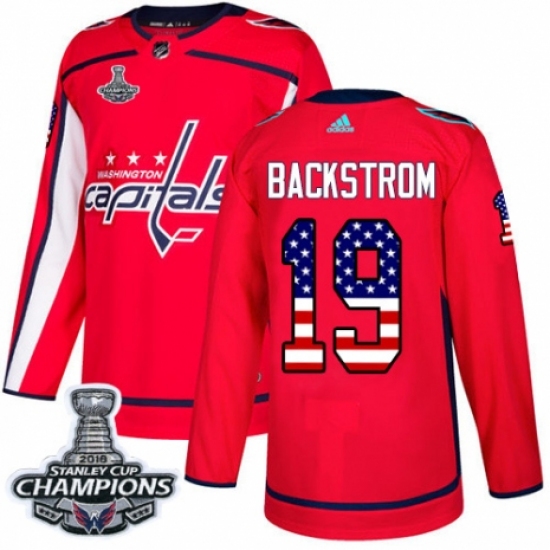 Youth Adidas Washington Capitals #19 Nicklas Backstrom Authentic Red USA Flag Fashion 2018 Stanley Cup Final Champions NHL Jersey
