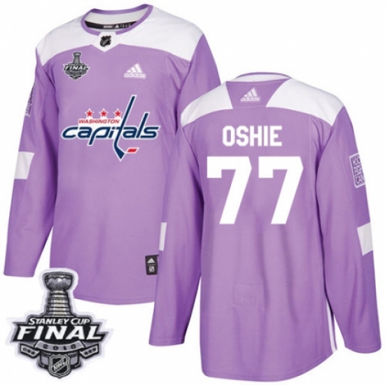 Youth Adidas Washington Capitals #77 T.J. Oshie Authentic Purple Fights Cancer Practice 2018 Stanley Cup Final NHL Jersey
