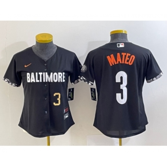 Men's Baltimore Orioles #3 Jorge Mateo Number Black 2023 City Connect Cool Base Stitched Jersey