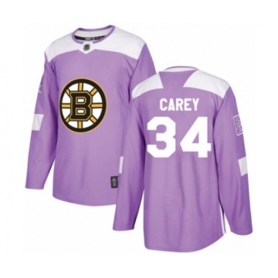 >Youth Boston Bruins #34 Paul Carey Authentic Purple Fights Cancer Practice Hockey Jersey