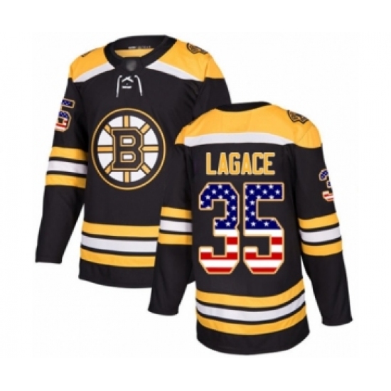>Youth Boston Bruins #35 Maxime Lagace Authentic Black USA Flag Fashion Hockey Jersey