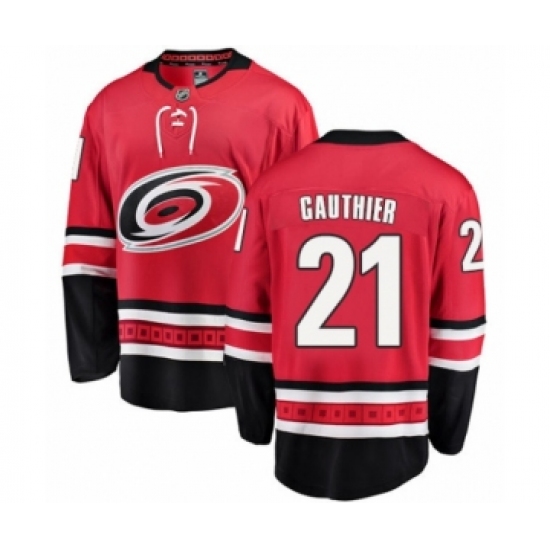 >Youth Carolina Hurricanes #21 Julien Gauthier Authentic Red Home Fanatics Branded Breakaway NHL Jersey