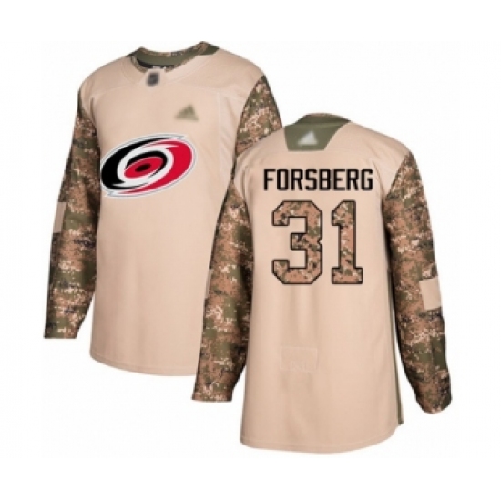 Men's Carolina Hurricanes #31 Anton Forsberg Authentic Camo Veterans Day Practice Hockey Jersey