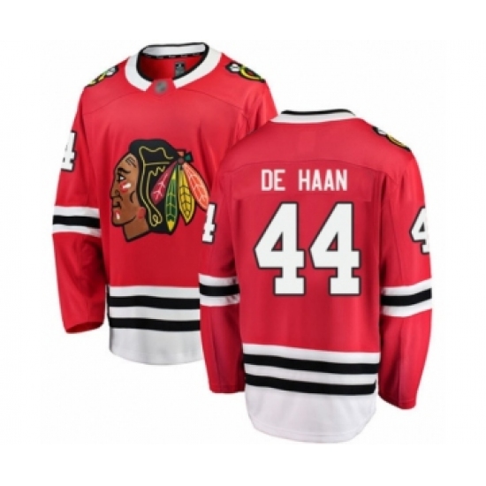 Youth Chicago Blackhawks #44 Calvin De Haan Authentic Red Home Fanatics Branded Breakaway Hockey Jersey
