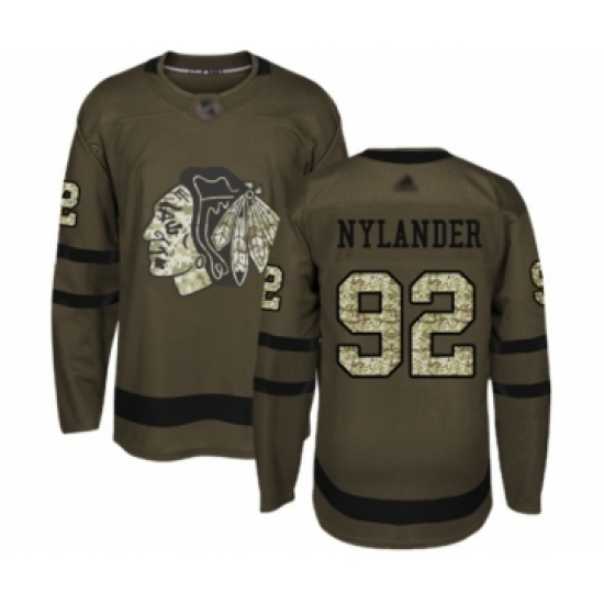 >Youth Chicago Blackhawks #92 Alexander Nylander Authentic Green Salute to Service Hockey Jersey