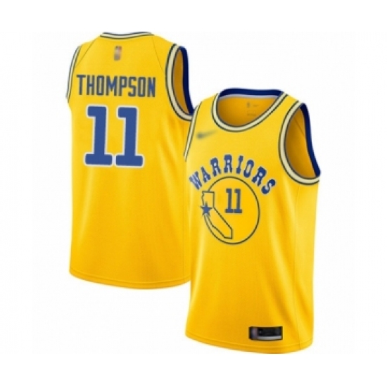 >Youth Golden State Warriors #11 Klay Thompson Swingman Gold Hardwood Classics Basketball Jersey