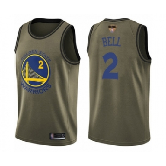 >Youth Golden State Warriors #2 Jordan Bell Swingman Green Salute to Service 2019 Basketball Finals Bound Basketball Jersey
