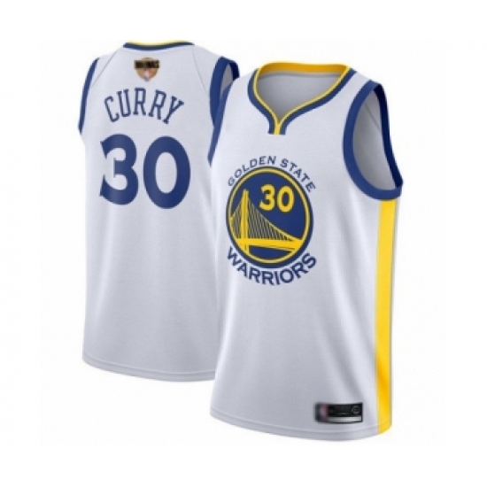 >Youth Golden State Warriors #30 Stephen Curry Swingman White 2019 Basketball Finals Bound Basketball Jersey - Association Edition