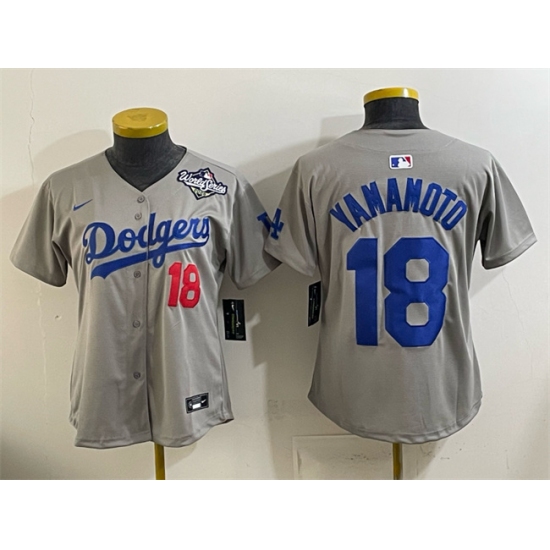 Youth Los Angeles Dodgers #18 Yoshinobu Yamamoto Grey 2025 World Series Limited Stitched Baseball Jersey