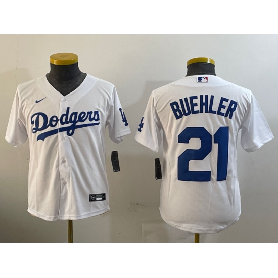 Youth Los Angeles Dodgers #21 Walker Buehler Number White Stitched Cool Base Nike Jersey
