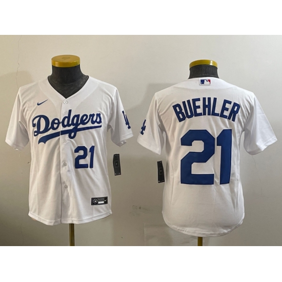 Youth Los Angeles Dodgers #21 Walker Buehler White Stitched Cool Base Nike Jersey