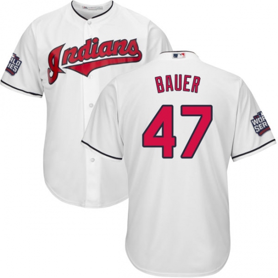Home>MLB>Cleveland Indians>Trevor Bauer>Youth Majestic Cleveland Indians #47 Trevor Bauer Authentic White Home 2016 World Series Bound Cool Base MLB Jersey