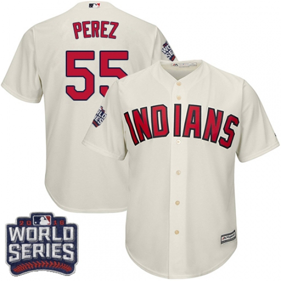 Home>MLB>Cleveland Indians>Roberto Perez>Youth Majestic Cleveland Indians #55 Roberto Perez Authentic Cream Alternate 2 2016 World Series Bound Cool Base MLB Jersey