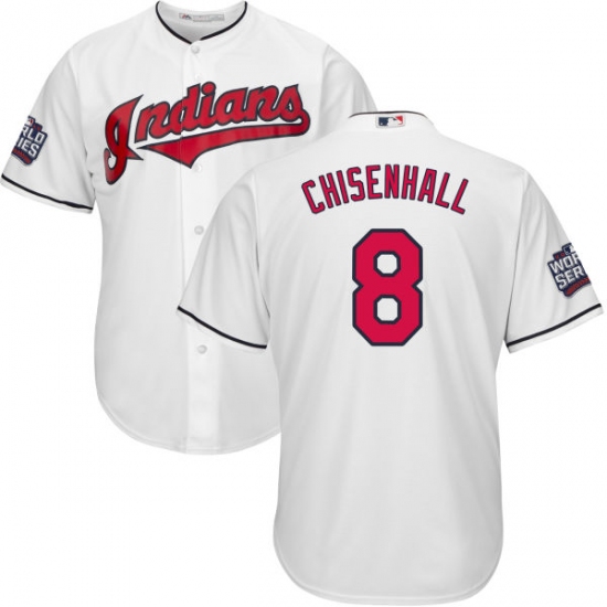 Home>MLB>Cleveland Indians>Lonnie Chisenhall>Youth Majestic Cleveland Indians #8 Lonnie Chisenhall Authentic White Home 2016 World Series Bound Cool Base MLB Jersey