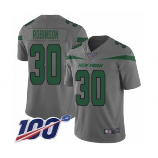 >Youth New York Jets #30 Rashard Robinson Limited Gray Inverted Legend 100th Season Football Jersey