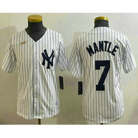 Youth New York Yankees #7 Mickey Mantle White Throwback Stitched Cool Base Nike Jersey