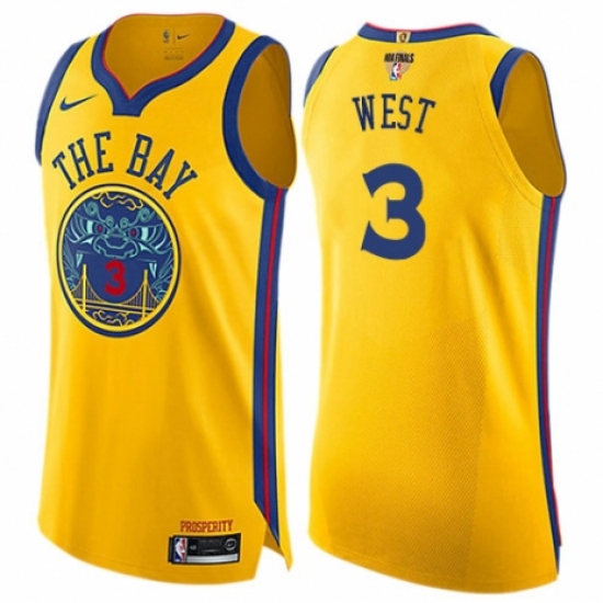 Men's Golden State Warriors #3 David West Swingman Gold 2019 Basketball Finals Bound Basketball Jersey - City Edition