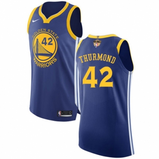 Youth Nike Golden State Warriors #42 Nate Thurmond Authentic Royal Blue Road 2018 NBA Finals Bound NBA Jersey - Icon Edition