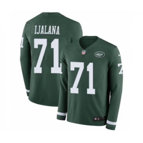 Women's Nike New York Jets #71 Ben Ijalana Limited Green Therma Long Sleeve NFL Jersey