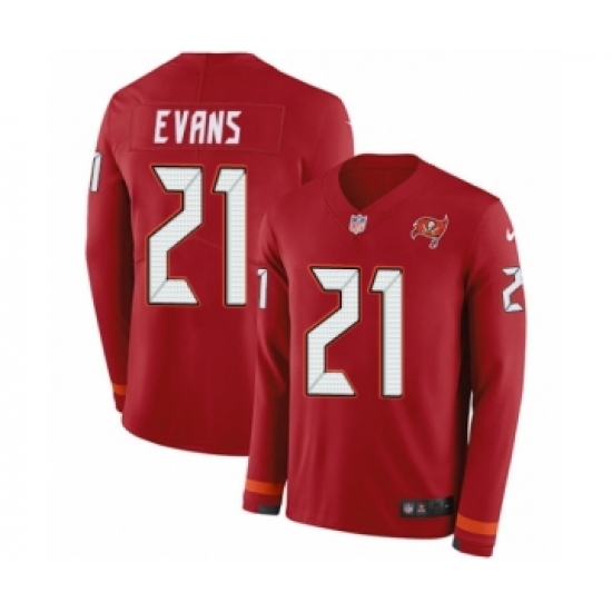 Youth Nike Tampa Bay Buccaneers #21 Justin Evans Limited Red Therma Long Sleeve NFL Jersey