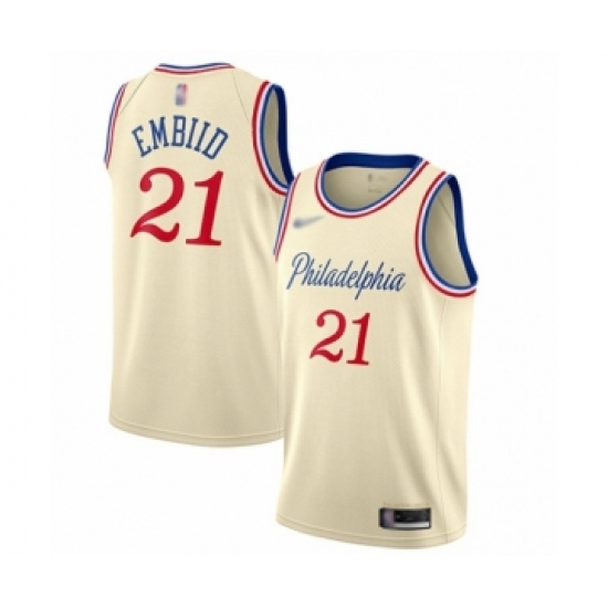 Women's Philadelphia 76ers #21 Joel Embiid Swingman Cream Basketball Jersey - 2019 20 City Edition