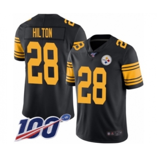 >Youth Pittsburgh Steelers #28 Mike Hilton Limited Black Rush Vapor Untouchable 100th Season Football Jersey