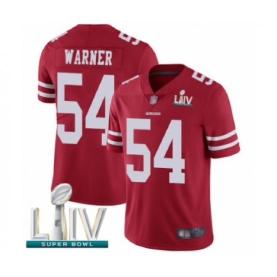>Youth San Francisco 49ers #54 Fred Warner Red Team Color Vapor Untouchable Limited Player Super Bowl LIV Bound Football Jersey