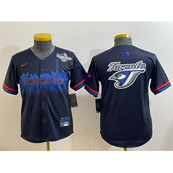 >Youth Toronto Blue Jays Team Big Logo Navy 2025 World Series City Connect Limited Stitched Baseball Jersey