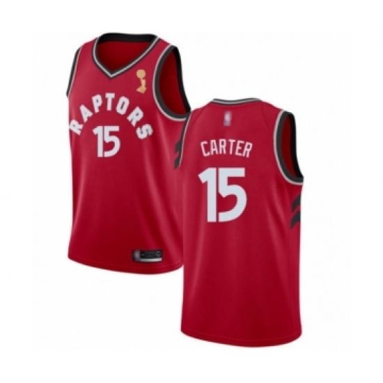 >Youth Toronto Raptors #15 Vince Carter Swingman Red 2019 Basketball Finals Champions Jersey - Icon Edition