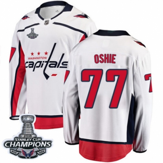 Men's Washington Capitals #77 T.J. Oshie Fanatics Branded White Away Breakaway 2018 Stanley Cup Final Champions NHL Jersey