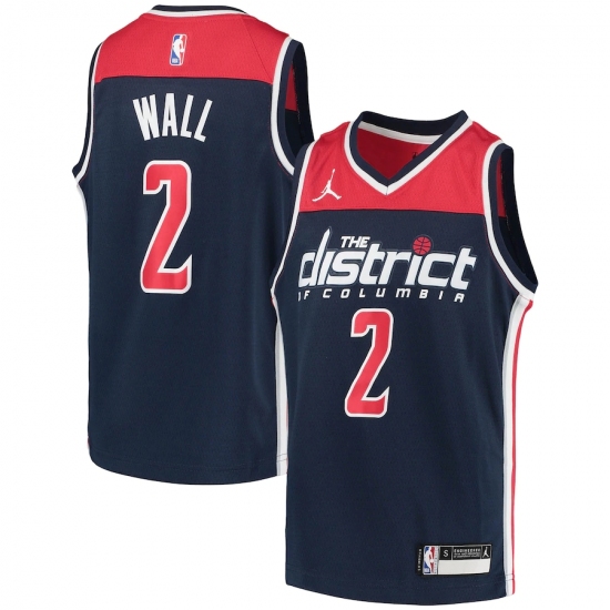 >Youth Washington Wizards #2 John Wall Jordan Brand Navy 2020-21 Swingman Player Jersey